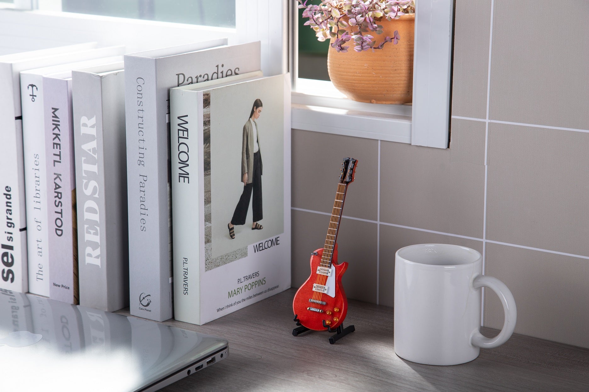 ALANO Miniature Guitar, Mini Electric Guitar Model Musical Instrument Ornament, Wooden Music Instrument Model Home Decoration (E39-17.5)